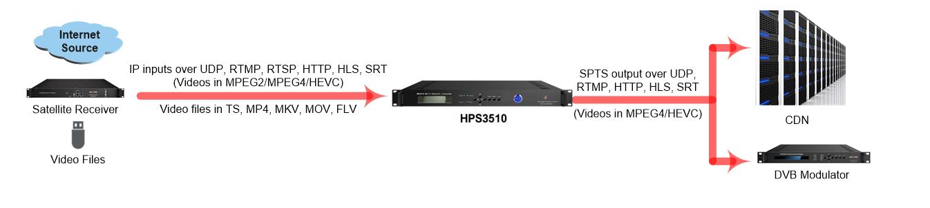 • IP SPTS output over UDP/RTMP/HTTP/HLS/SRT
