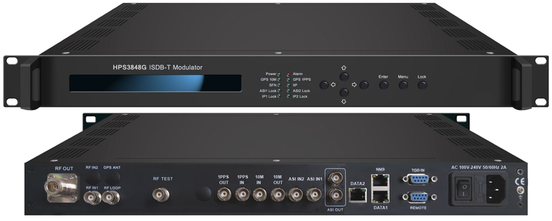 HPS3848G ISDB-T modulator is developed to adapt Brazil, Argentina and other South American country's terrestrial digital television. The modulator's channel encoding and modulation mode is fully complying with the ARIB STD-B31 standard. This ISDB-T modulator supports two ASI and two IP input, single frequency network, and multi-frequency network. In order to improve the output performance of the transmitter, this ISDB-T modulator also simultaneously supports adaptive linear and nonlinear digital pre-distortion, layered transmission and three transmission modes. Furthermore, this device can be upgraded and controlled through network system, which can be widely used in ISDB-T digital broadcasting network's setting up and set-top box design's production and test.